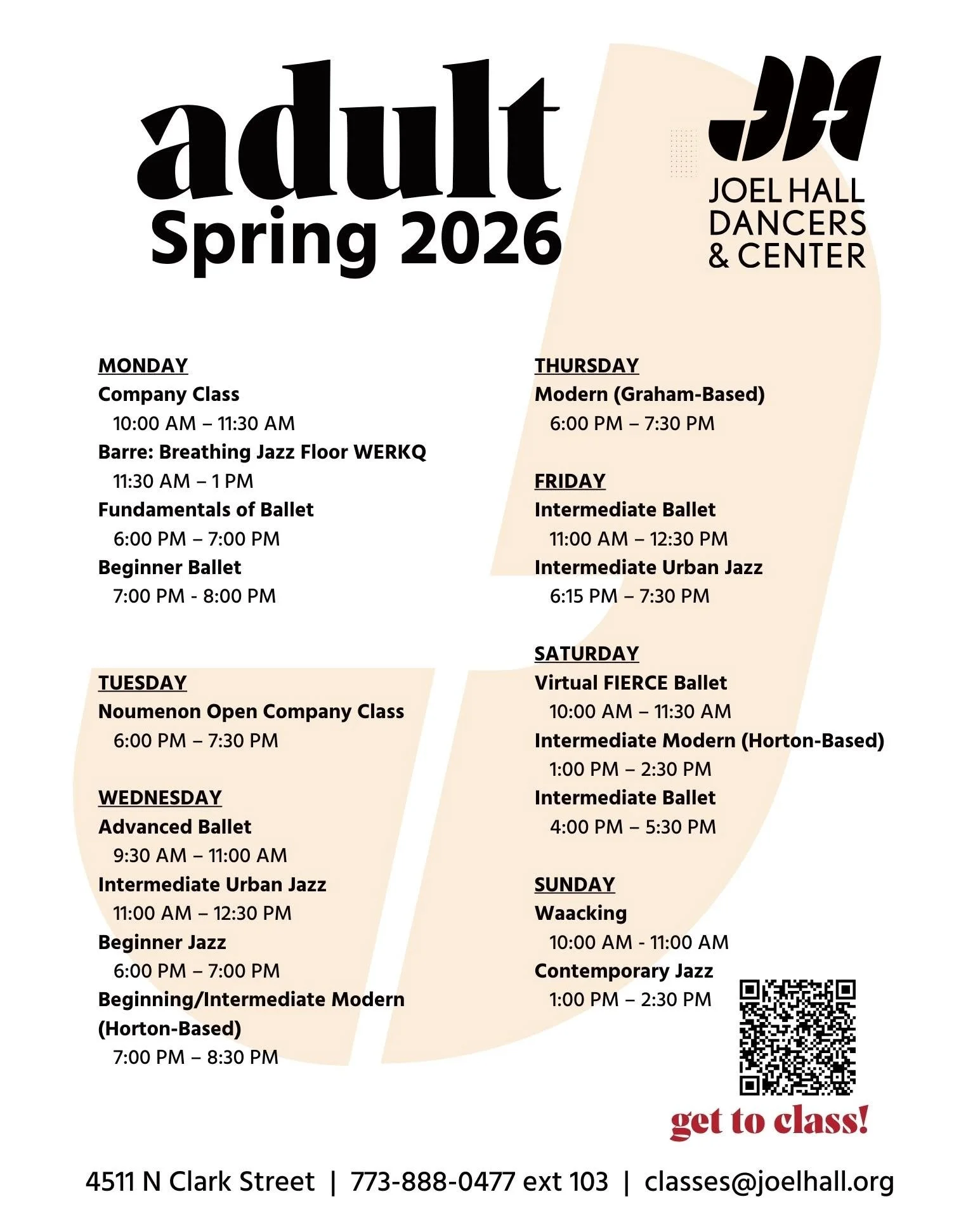 JHDC continues to offer online as well as in-person classes to meet your needs. Our Main Studio is located in Sheridan Park at 4511 N. Clark.