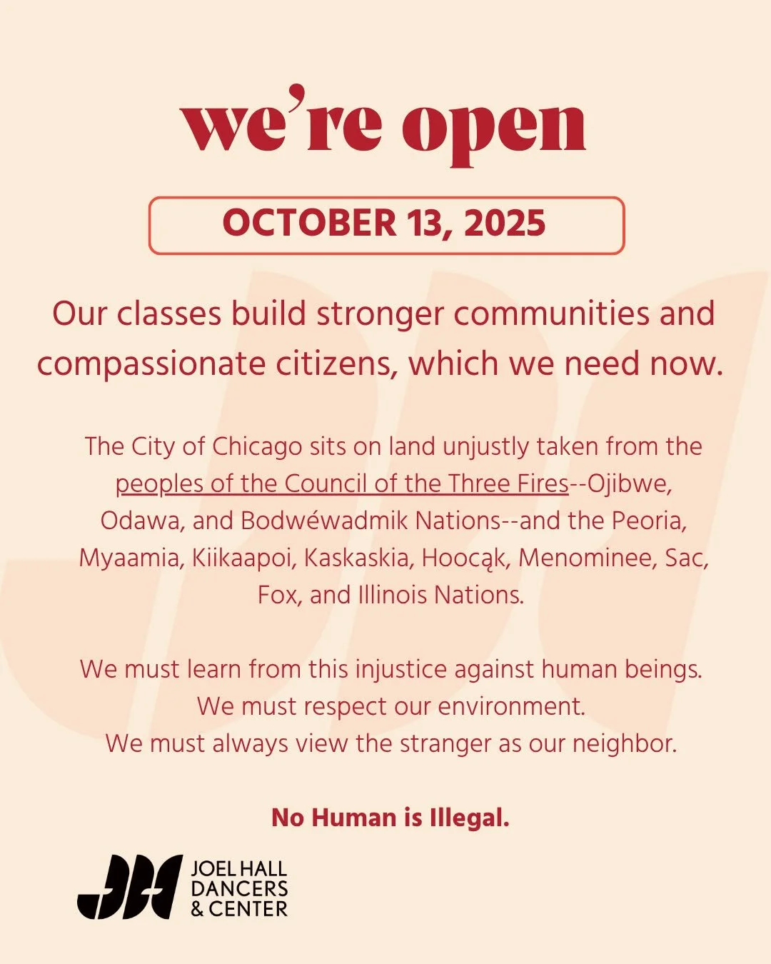 JHDC continues to offer online as well as in-person classes to meet your needs. Our Main Studio is located in Sheridan Park at 4511 N. Clark.